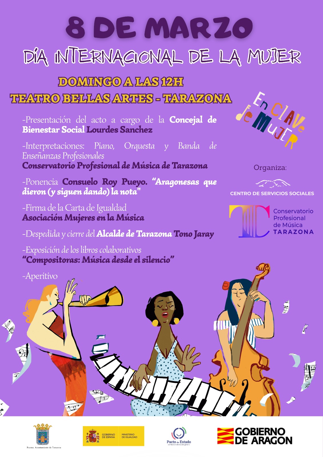 08/03/2026 El domingo 8 de marzo, celebramos el Día Internacional de la Mujer en el Teatro Bellas Artes, junto al Conservatorio Profesional de Música de Tarazona.
